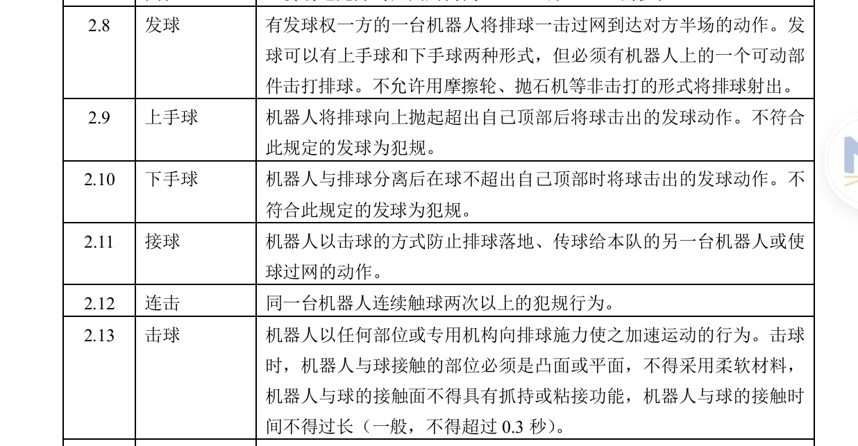 “2.9—上手球:机器人将排球向上抛起超出自己顶部后将球击出的发球动作。不符合此规定的发球为犯规。”