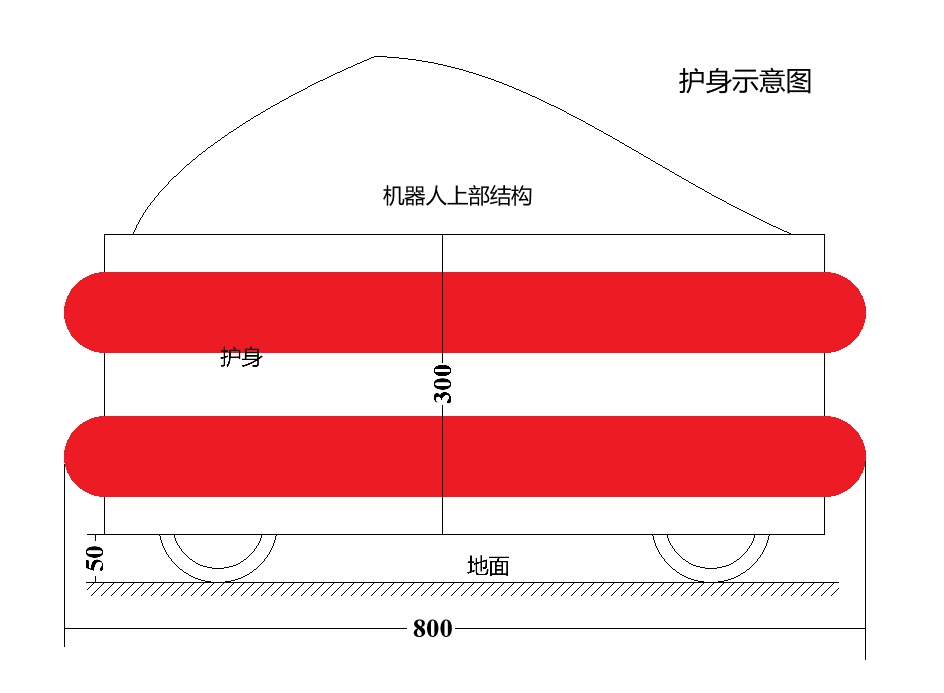 2.1 “机器人的护身直径不得超过 800mm”是英文规则和按照不得过度走样翻译的国内规则V2版的说法。在不再受翻译原则限制的国内规则V3版中,已改为“在任何时刻,机器人护身的结构和尺寸应符合术语2定义的要求”。